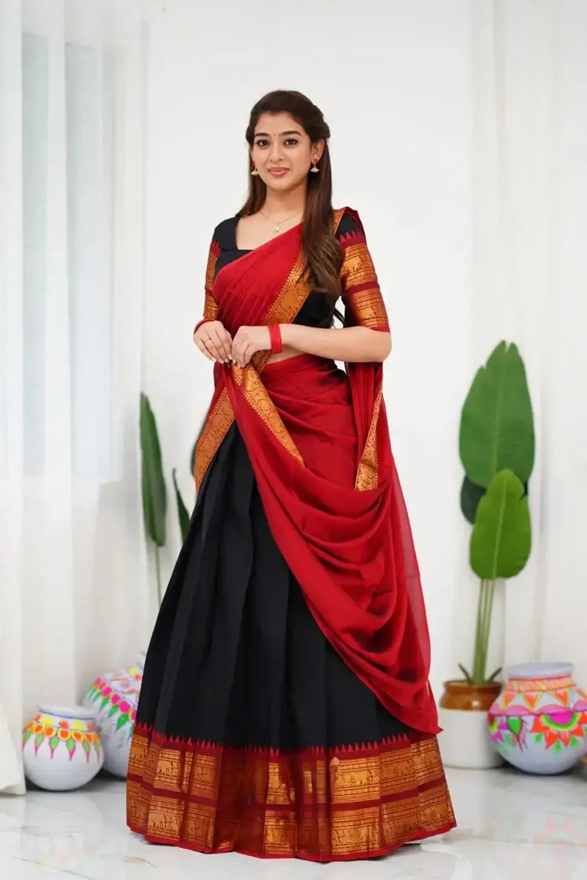 Kanjivaram Silk Half Lehenga Saree With Blouse And Dupatta