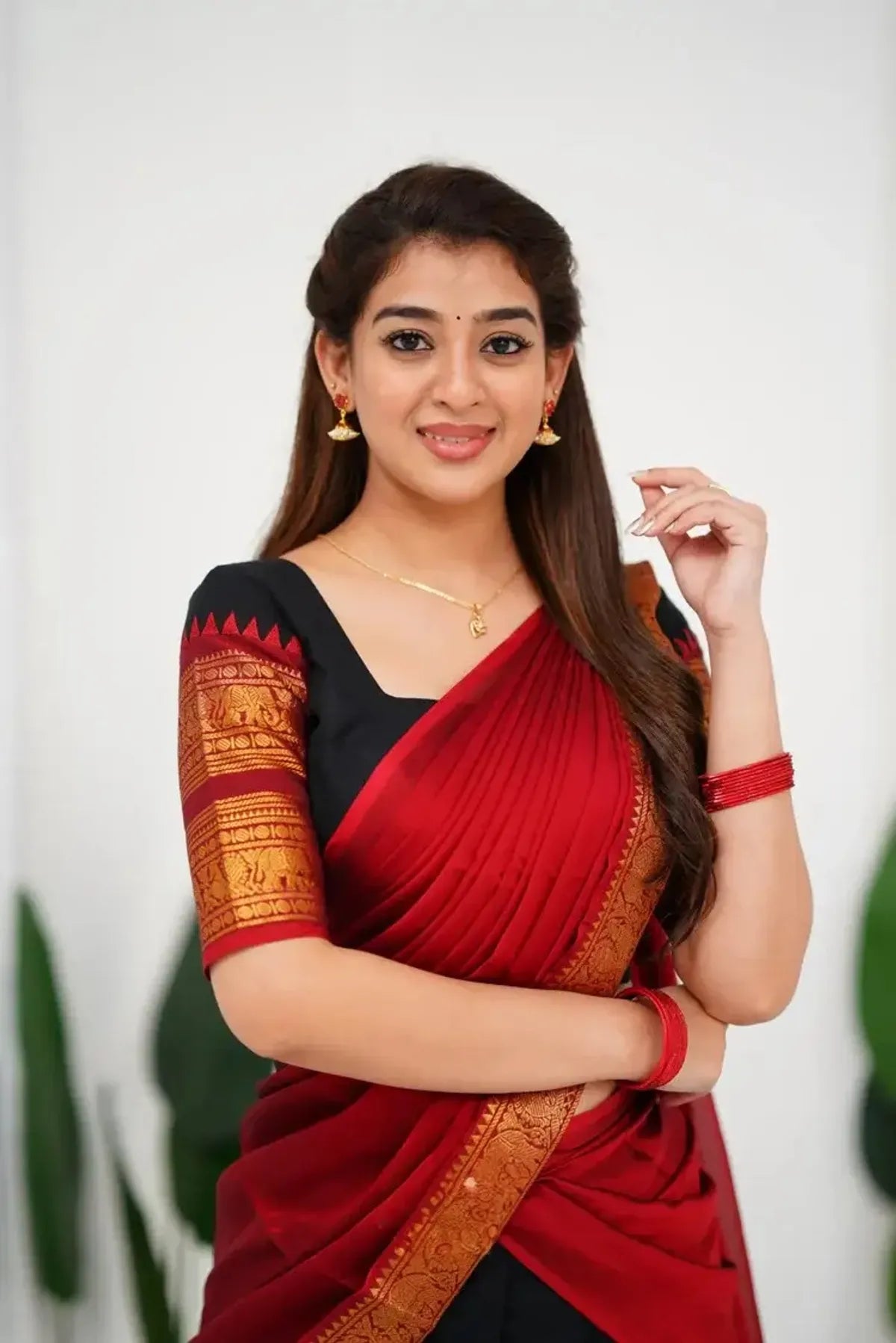 The Kanjivaram saree is a true emblem of timeless elegance, celebrated for its refined artistry and luxurious appeal. Crafted from premium mulberry silk and embellished with intricate gold or silver zari designs, it represents a harmonious blend of tradition, richness, and lasting beauty. Known for its opulent texture and remarkable longevity, this saree seamlessly merges cultural heritage with modern sophistication. For everyday wear, lighter versions featuring subtle motifs and breathable weaves provide exceptional comfort without compromising on grace. Whether styled with a neatly braided bun or soft, flowing curls, the Kanjivaram saree brings an effortless touch of classic allure to any ensemble.